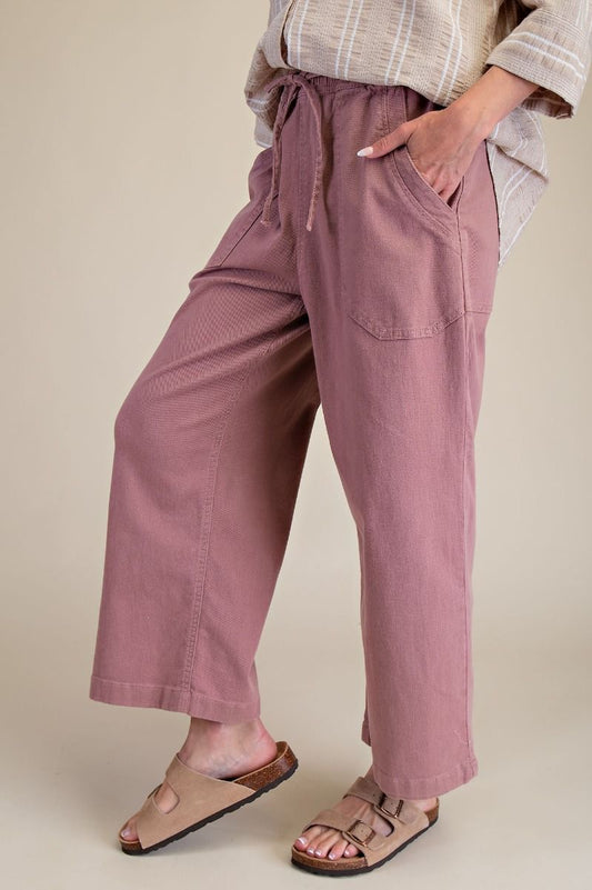 Wide Leg Twill Pants | Mauve