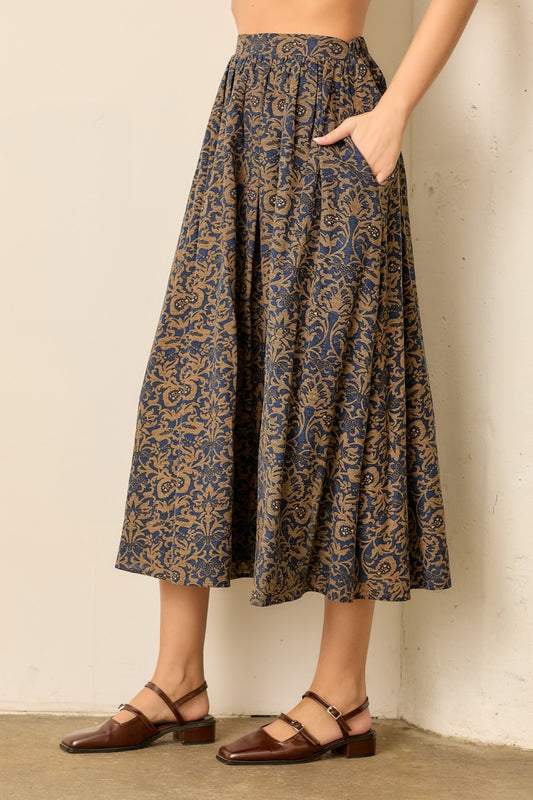 Navy Tapestry Midi Skirts
