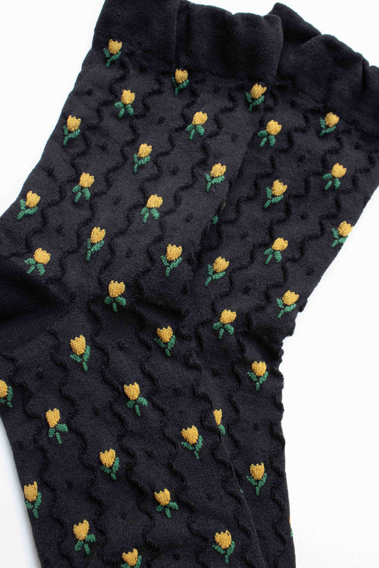 Vintage Rose & Heart Crew Socks | Gray Blue