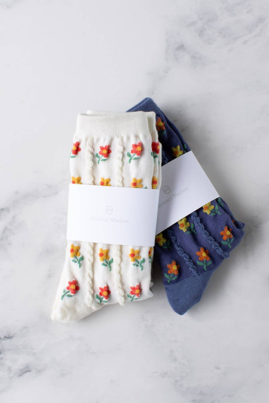 Textured Floral Crew Socks | Denim