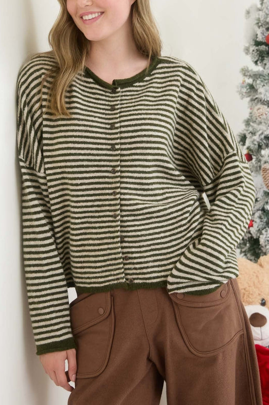 Striped Cardigan | Olive