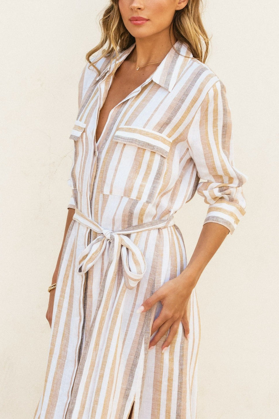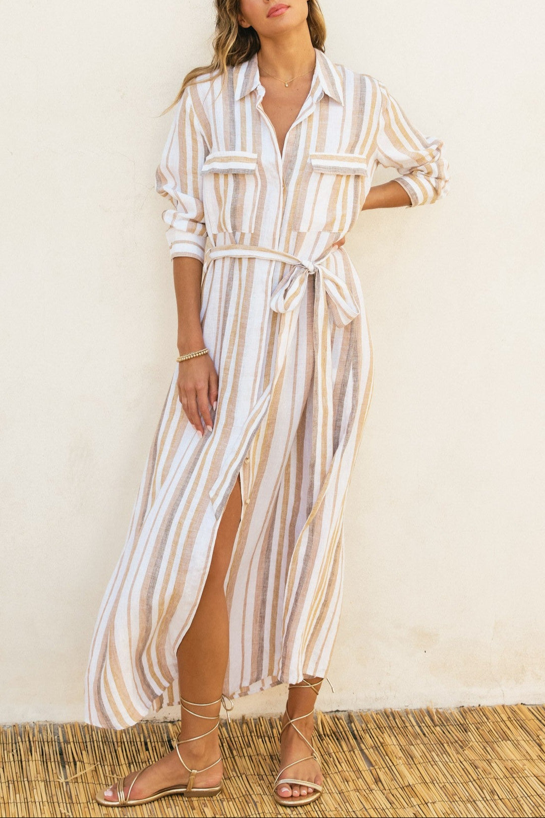collared | shirt dress | front hidden button closures | removable sash belt | front chest flap pockts | side inseam pockets | side slits | unlined