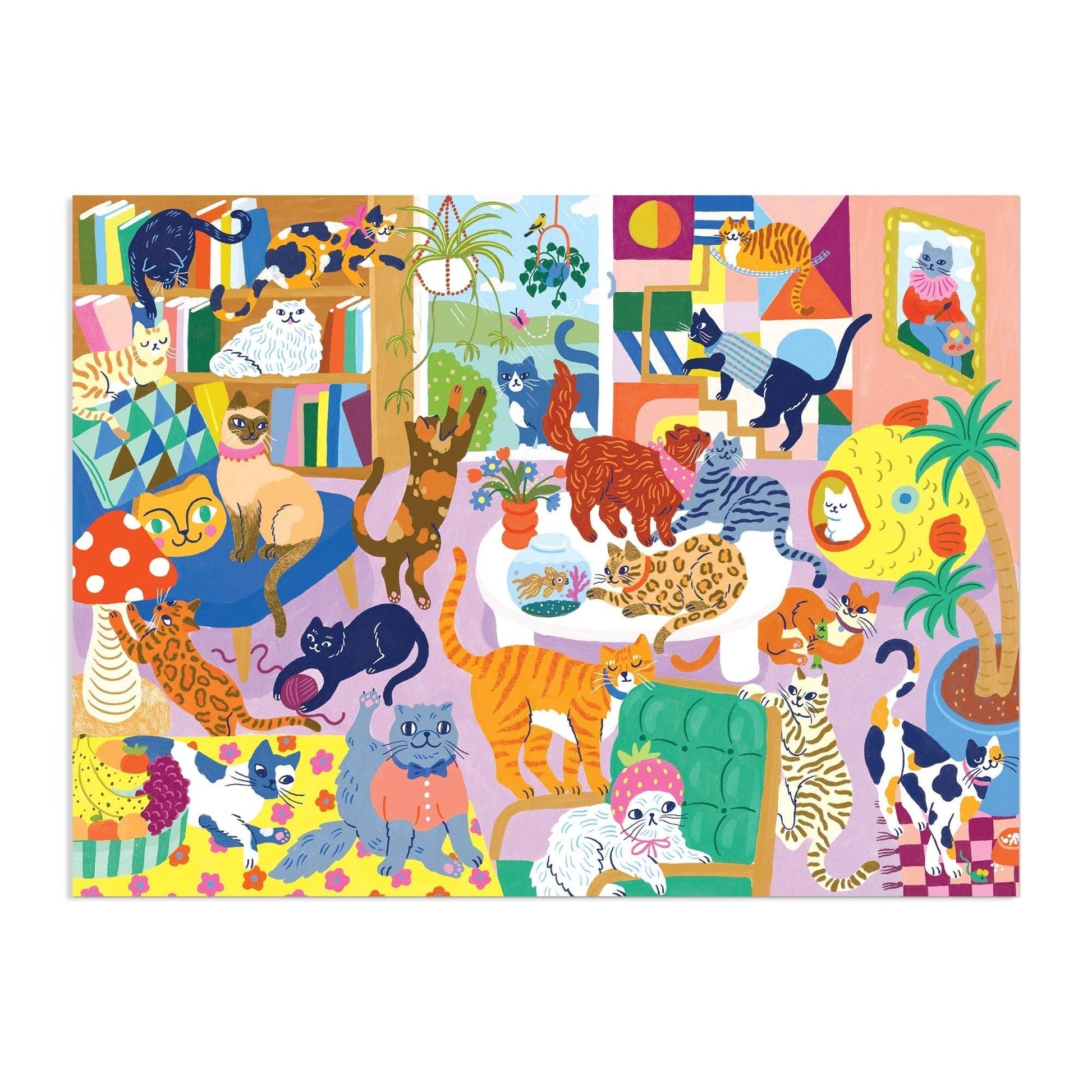 Settle in for hours of cozy puzzle fun with this delightful 1000-piece family puzzle featuring Sarah Walsh's whimsical cat club illustration. Perfect for puzzle nights, rainy days, or quality time together, this charming scene invites everyone to gather around and piece together the purr-fect picture.