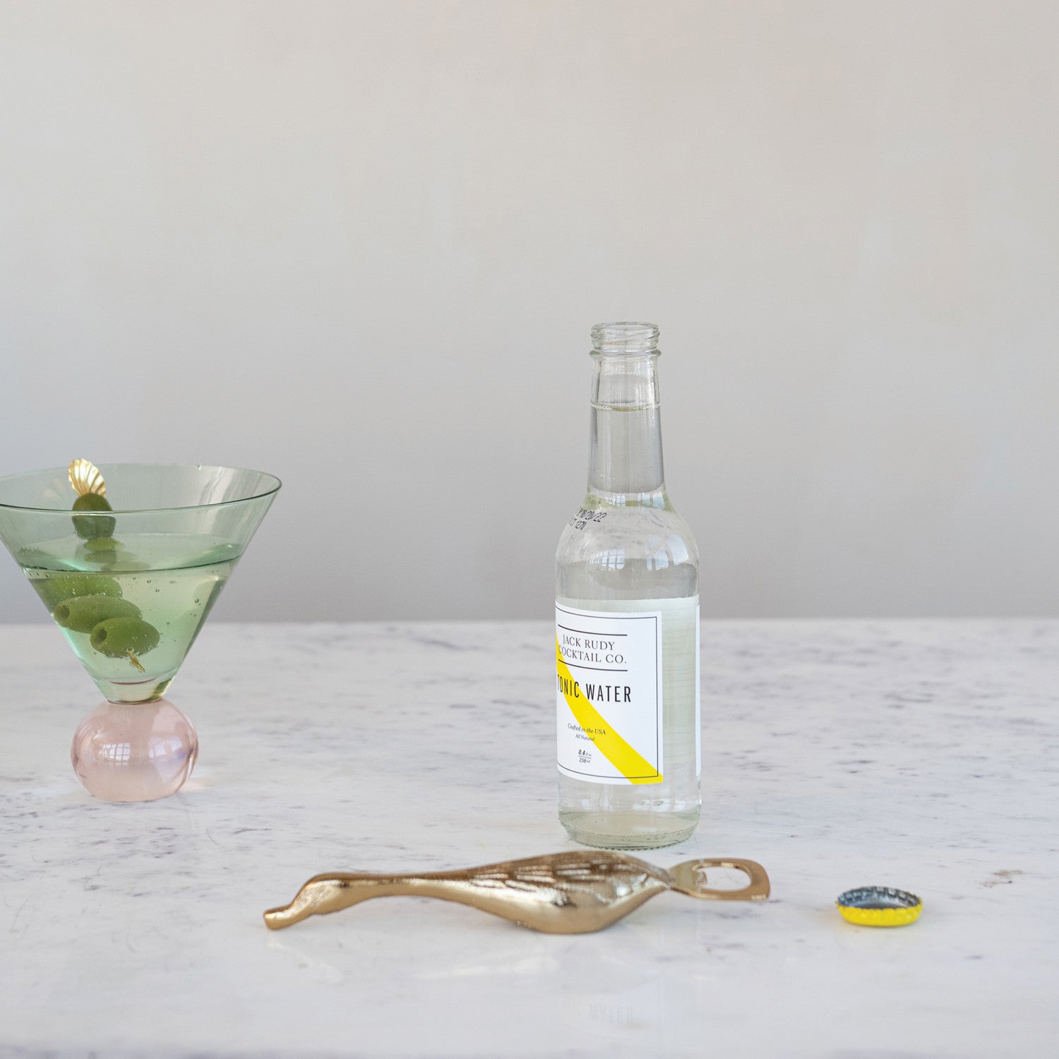 7" cast aluminum and stainless steel duck-shaped bottle opener with gold-toned finish. A charming functional piece that brings personality to your bar or kitchen.