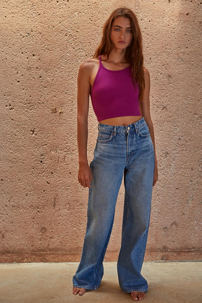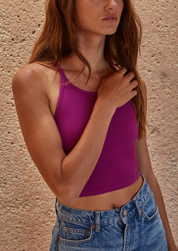 This slim, high neck brami top is perfect for keeping you comfortable while you move. So effortless with or (our favorite) without a bra, this tank will be your go-to from the studio to the street.