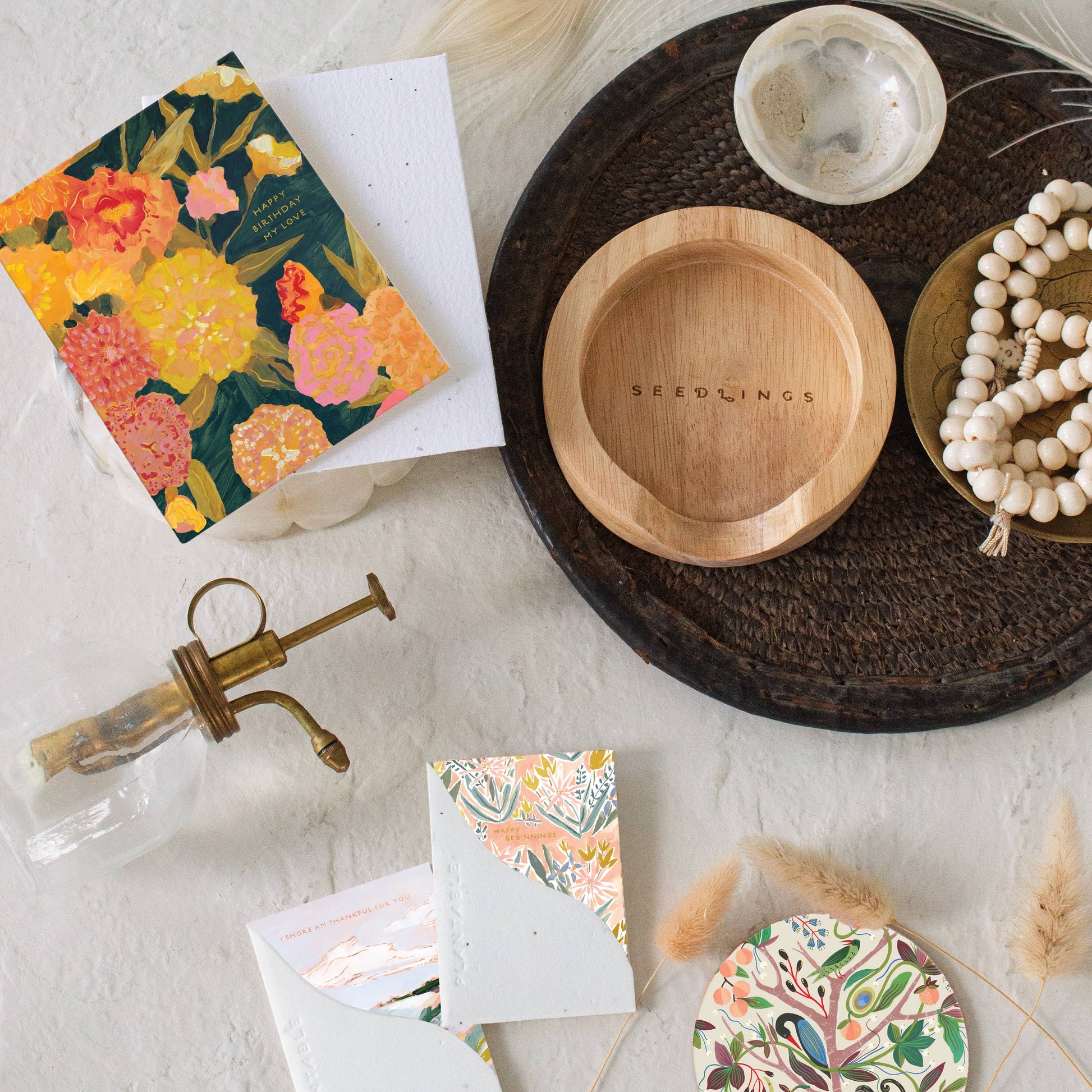 All Seedlings cards are paired with a plantable seed paper envelope which is embedded with non-invasive wildflower seeds. When planted, the envelopes compost away leaving only flowers behind.