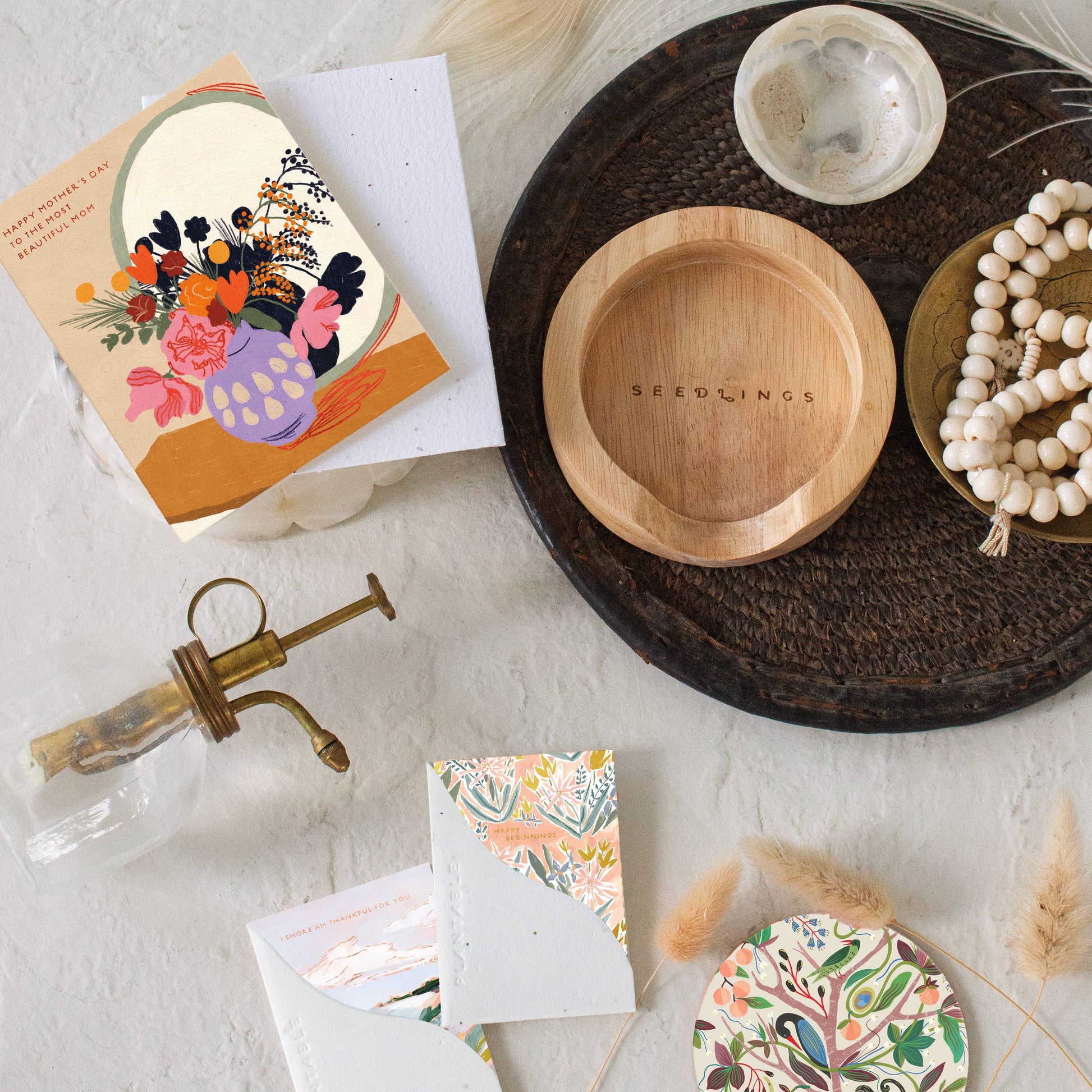 All Seedlings cards are paired with a plantable seed paper envelope which is embedded with non-invasive wildflower seeds. When planted, the envelopes compost away leaving only flowers behind.