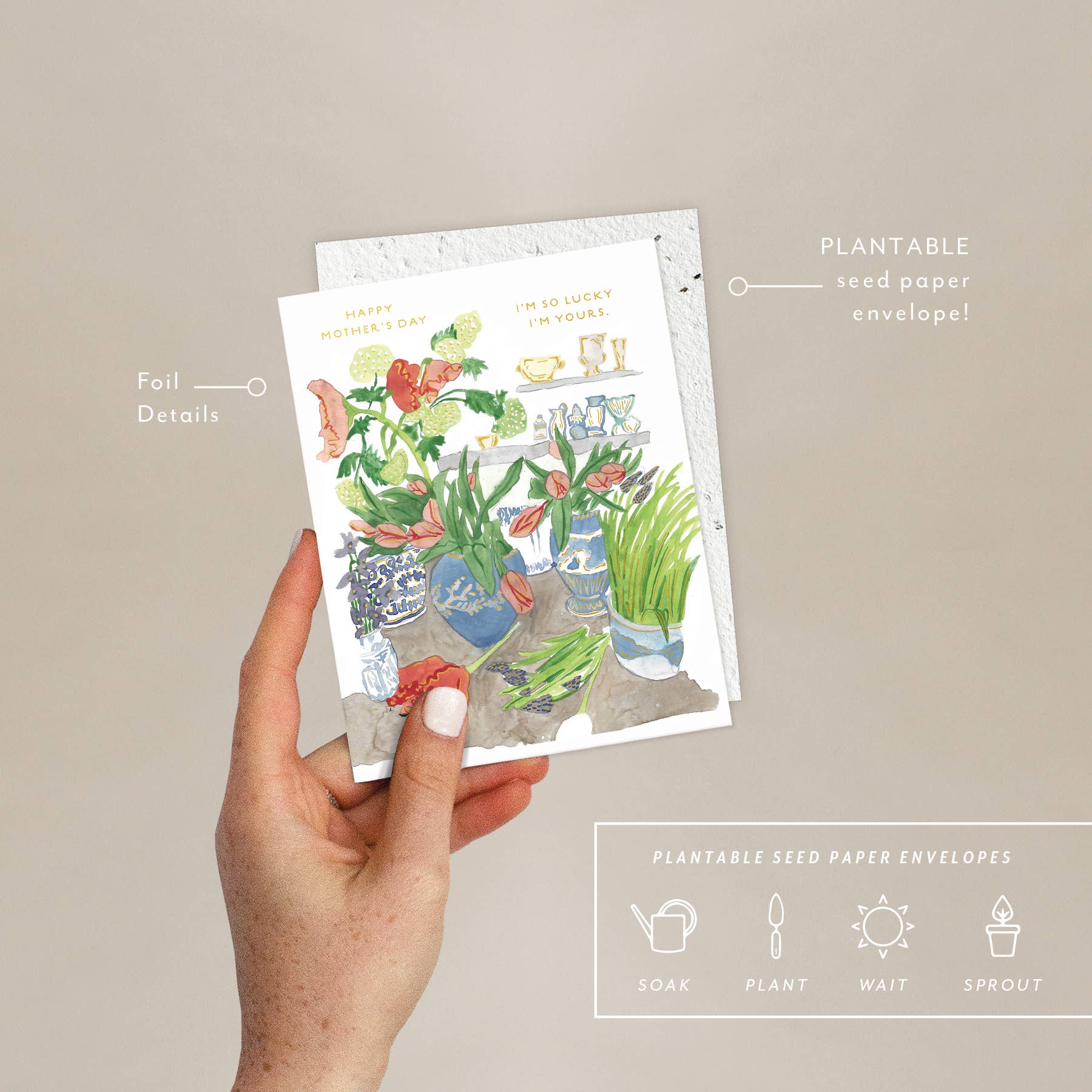 All Seedlings cards are paired with a plantable seed paper envelope which is embedded with non-invasive wildflower seeds. When planted, the envelopes compost away leaving only flowers behind.