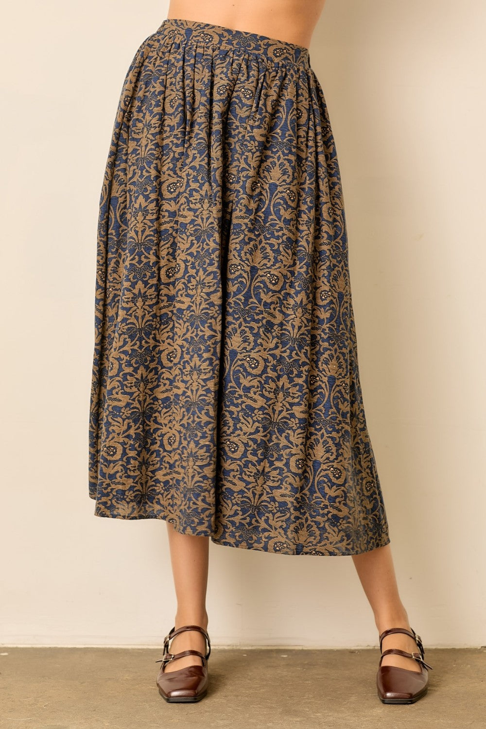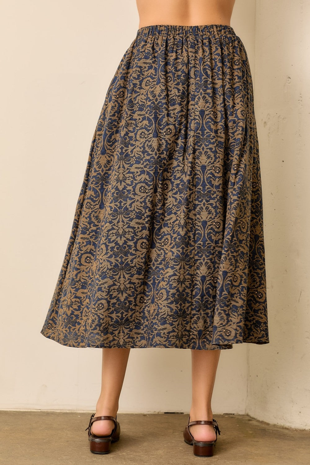 Navy Tapestry Midi Skirts
