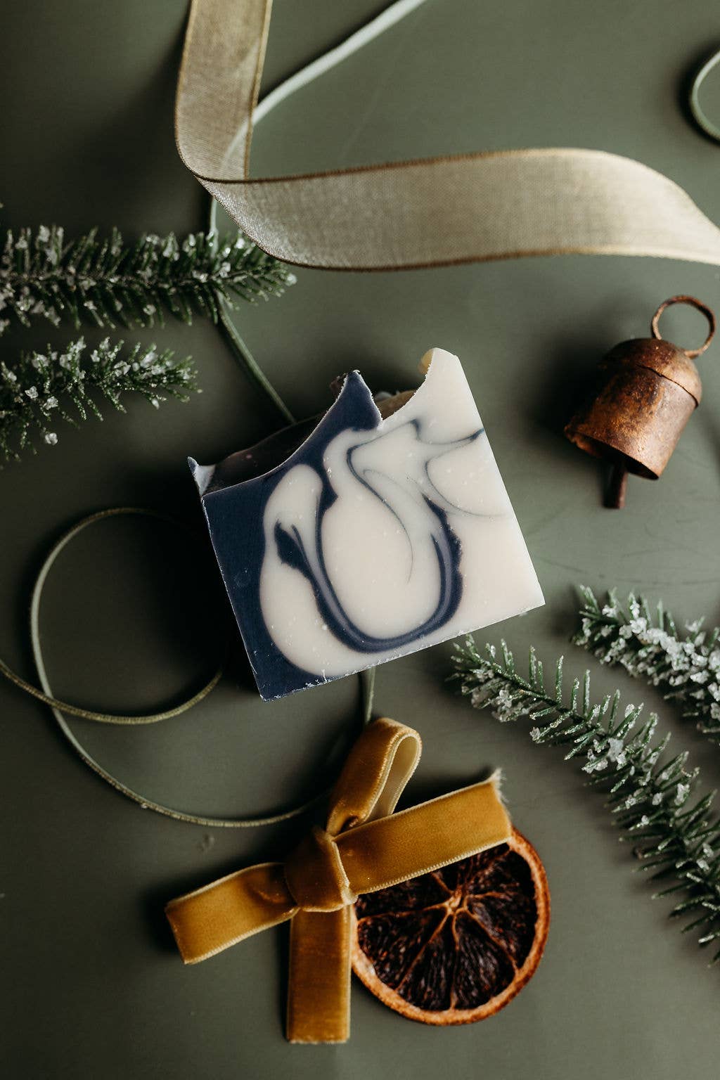 Inspired by the raw power of a coastal storm, Nor’easter features notes of sea mist, lavender, citrus, and cypress. Crafted for a deep, invigorating cleanse, this bar is ideal for body, hands, and gentle enough for face. Visually striking with indigo and white swirls, it’s a customer favorite for gift-giving and everyday use.