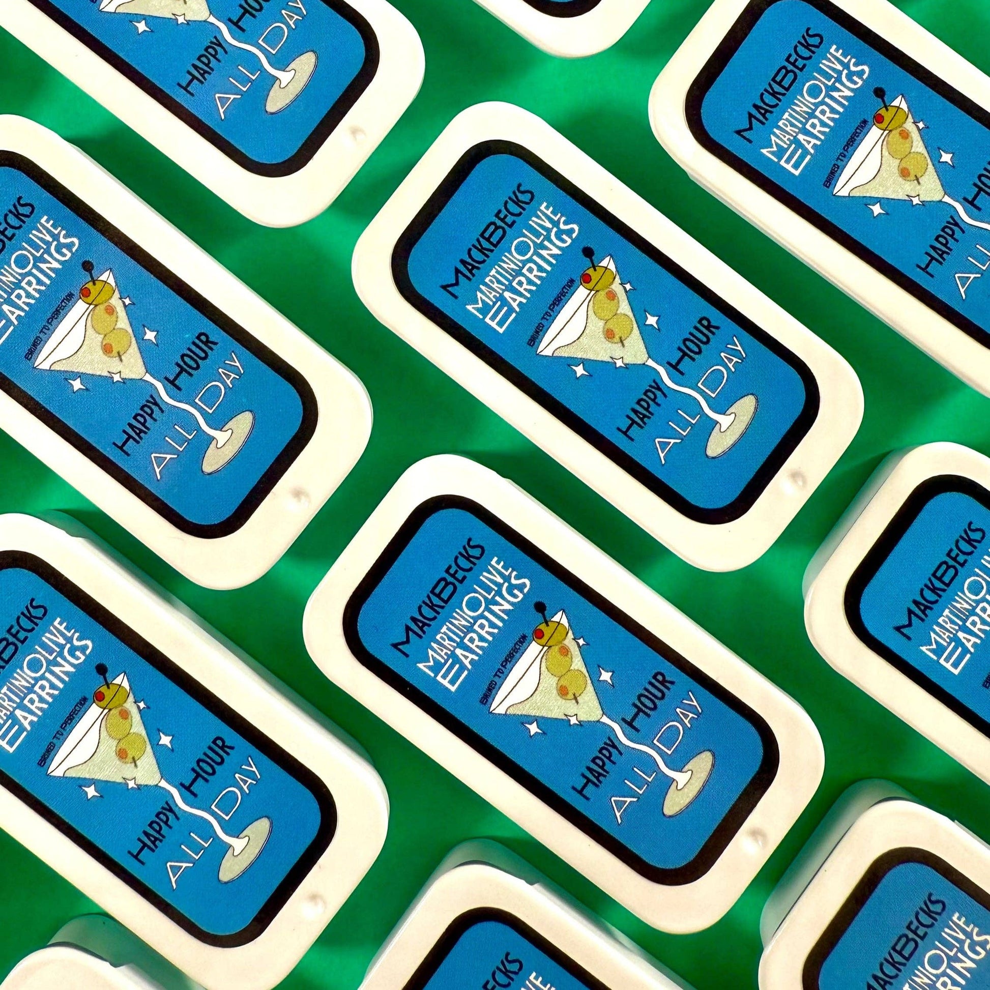 For those who like their accessories a little dirty. The Olive Earrings are a savory nod to cocktail hour, styled like the perfect martini garnish. Each earring is made from glossy, marbled cellulose acetate and hung from 20 mm gold-plated hinged hoops — lightweight, comfortable, and made to wear on repeat. Packed in a tiny, top-shelf tin with vintage cocktail bar styling, they’re designed to slip into your daily rotation — as easy to reach for as a bowl of briny olives.