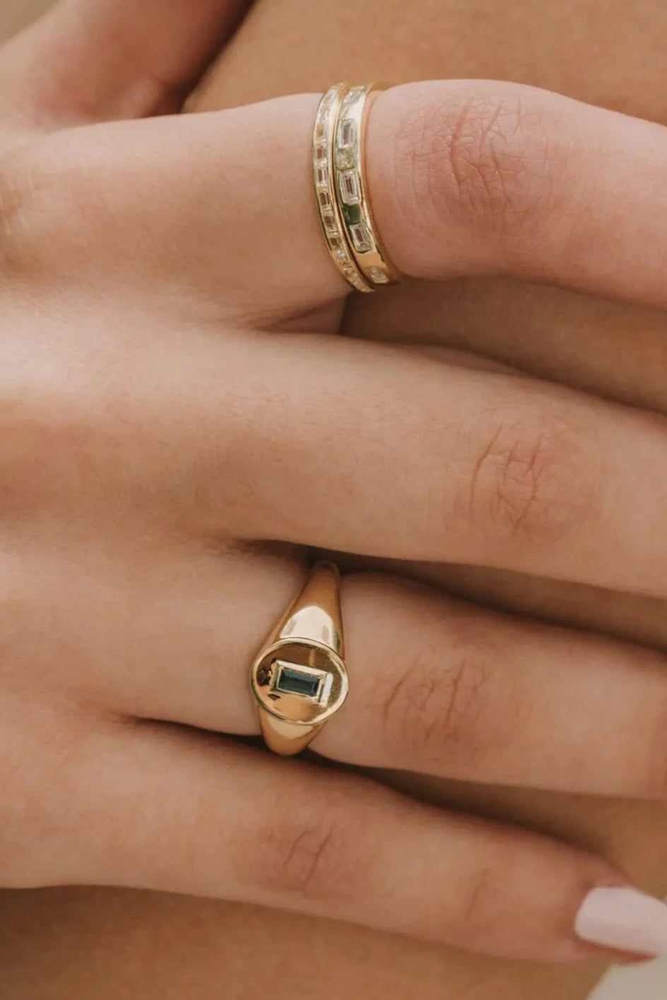 An eternity band for the books. Our friend, Paige, is a white topaz filled band, making it a perfect match for any stack...