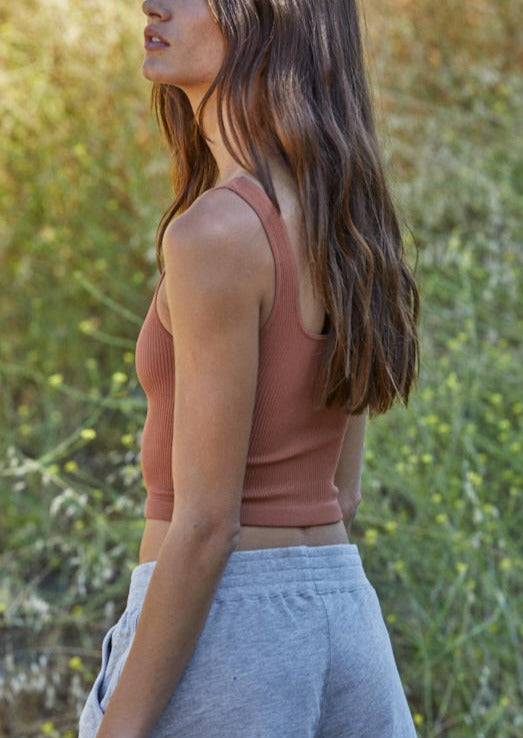 This seamless cropped scoop neck is a true closet essential with a perfect everyday fit and fixed straps.